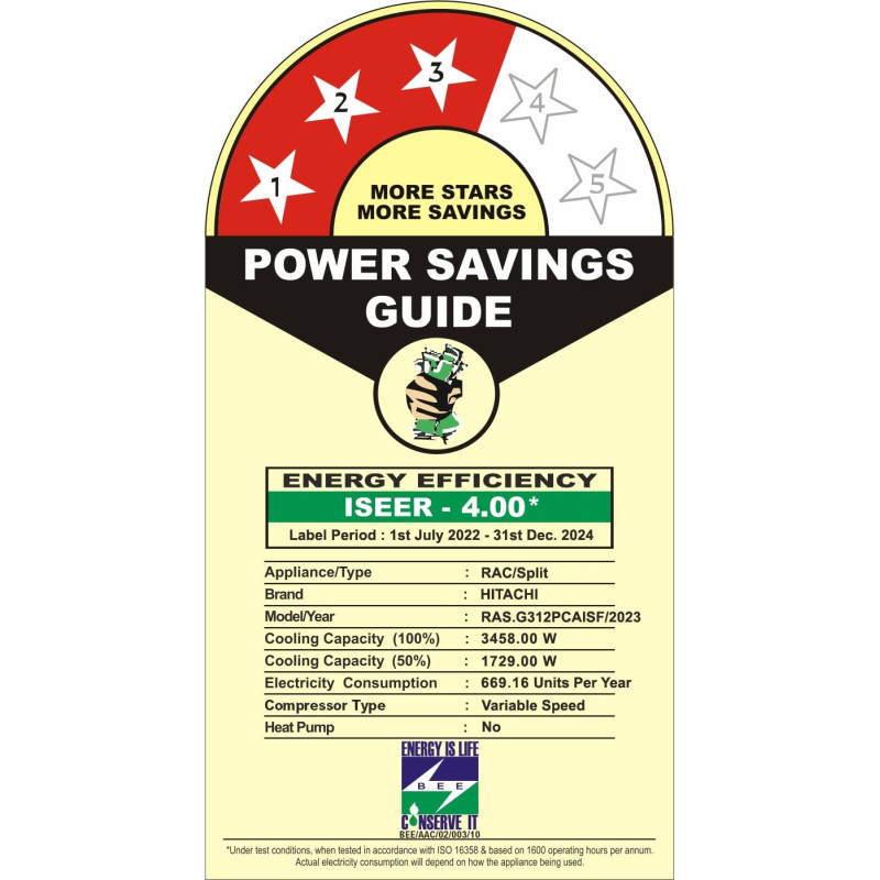 - Energy Rating : 3 Star - Best in class efficiency | Annual Energy Consumption: 1024.34 Units Per Year| ISEER Value: 3.92 The star rating is as per BEE guidelines